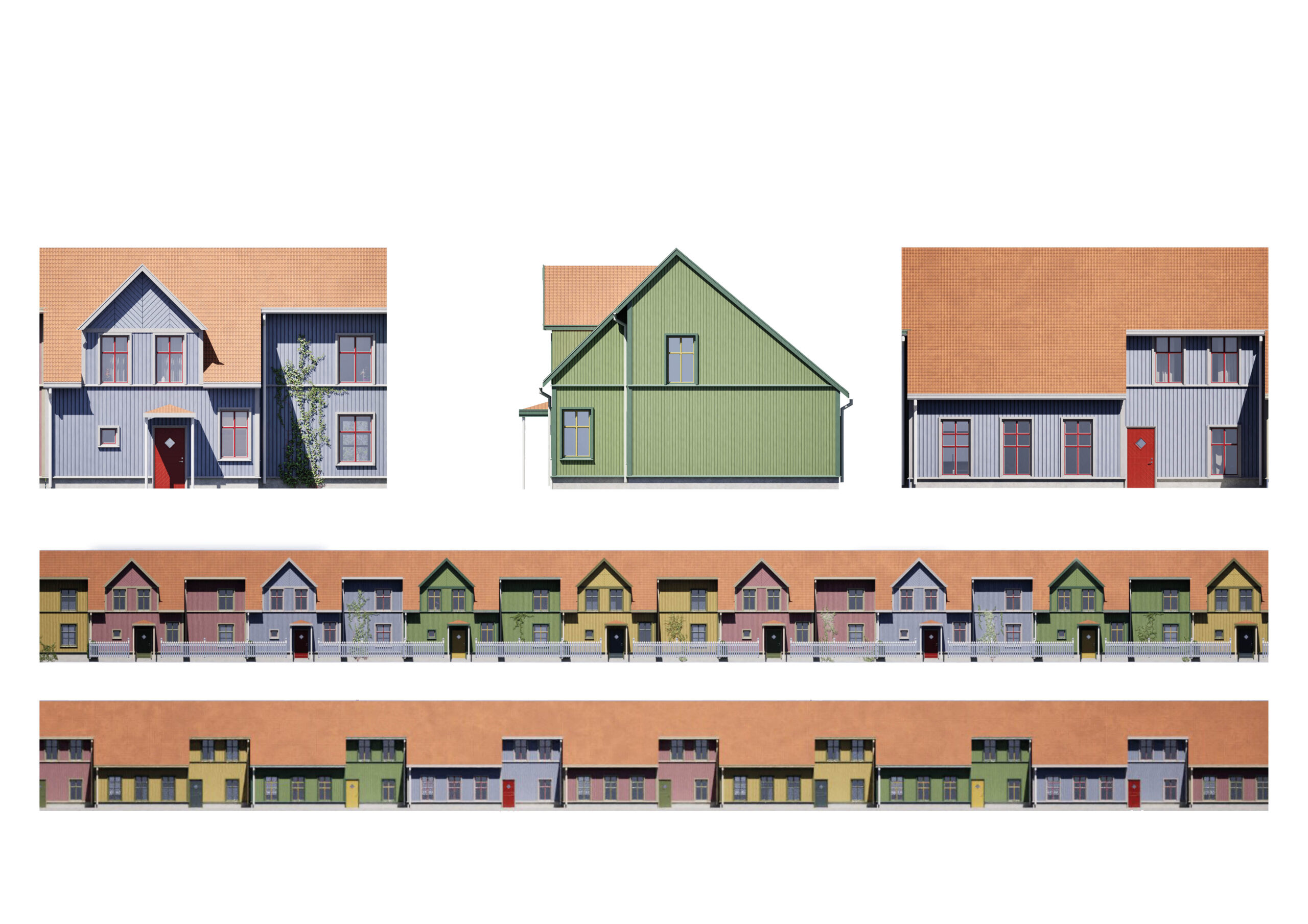 Bebyggelsen inspireras av Alingsås traditionella hus, men tolkas i en uppdaterad arkitektur med hållbara material, ljusare uttryck och större öppenhet mot omgivningen. Variation i färgsättning och detaljer ger varje hus egen karaktär, samtidigt som helheten hålls samman.