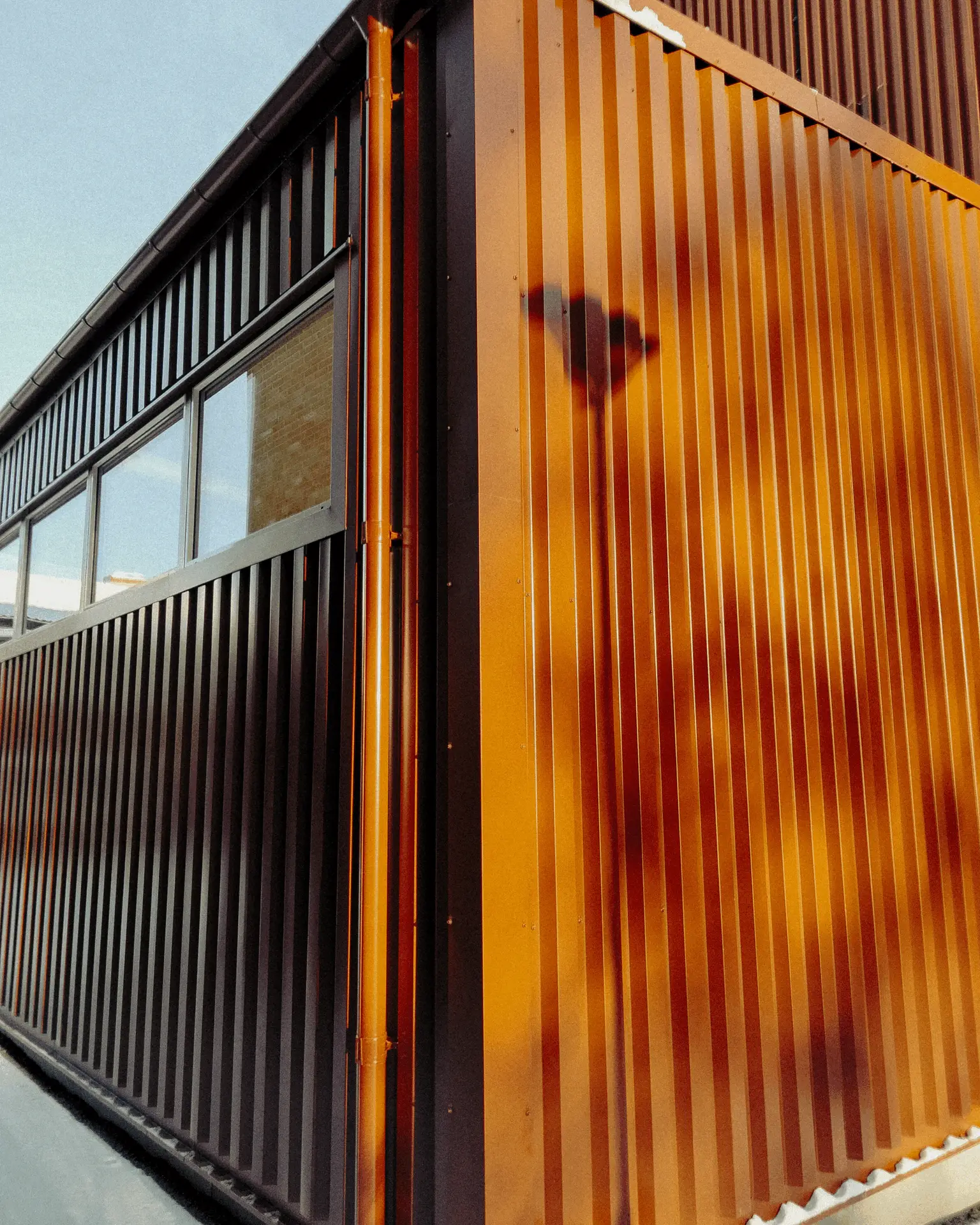 Tillbyggnaden är utformad för att på ett naturligt sätt integreras i RISE:s befintliga byggnadsstruktur. Genom att fortsätta det industriella formspråket med profilerad plåt, dämpade rödtoner och tydlig vertikal rytm skapas en volym som både är egen och samtidigt följer områdets arkitektoniska logik.